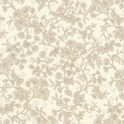 בד כותנה פרחים לבנים על רקע אפור בז’