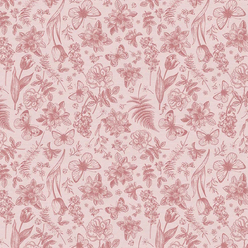 Pink flowers on pink cotton. 100% cotton weave.