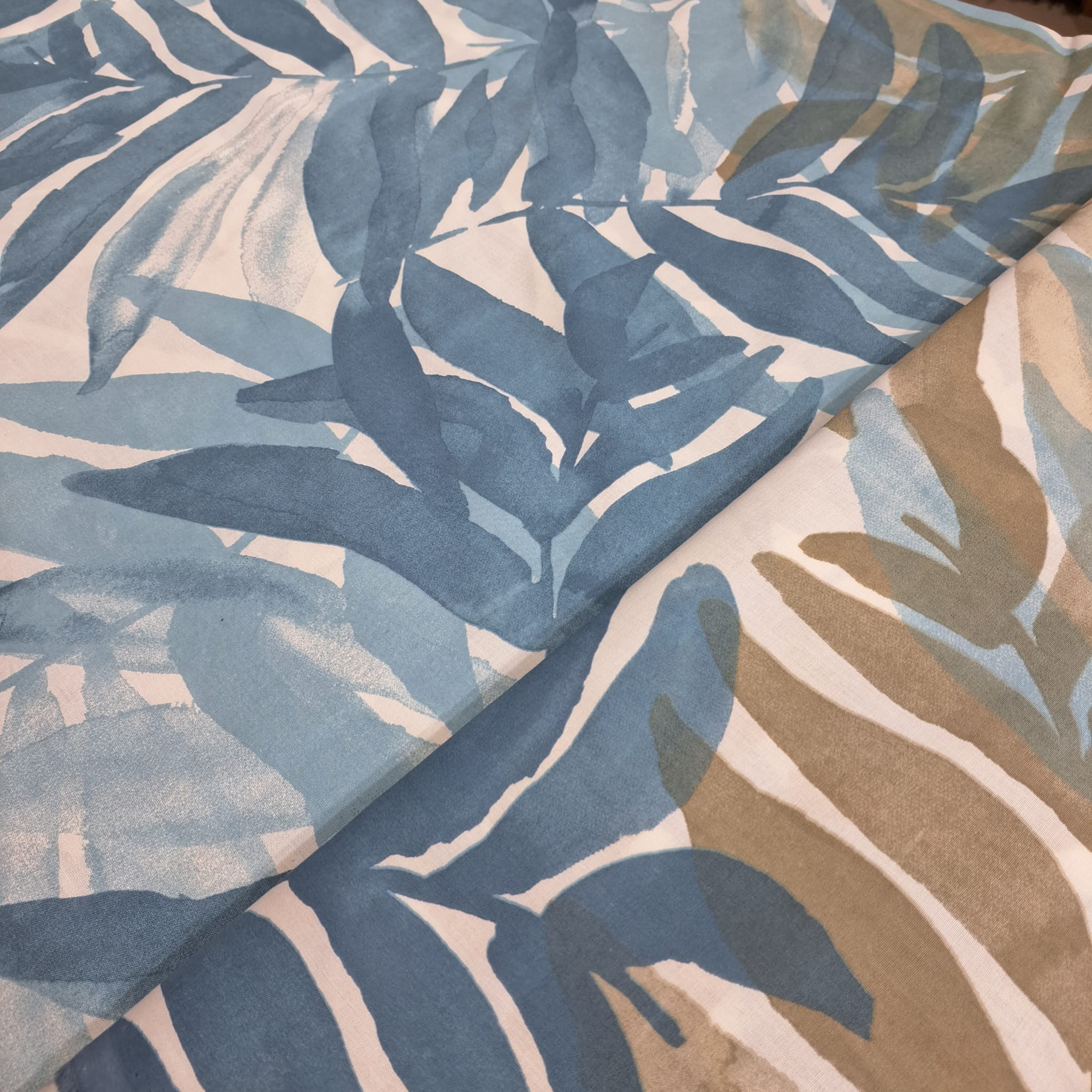 ראשי > קטלוג > אריג כותנה 2.5 מ' > כותנה רחבה הדפס עלים כחול ובז’