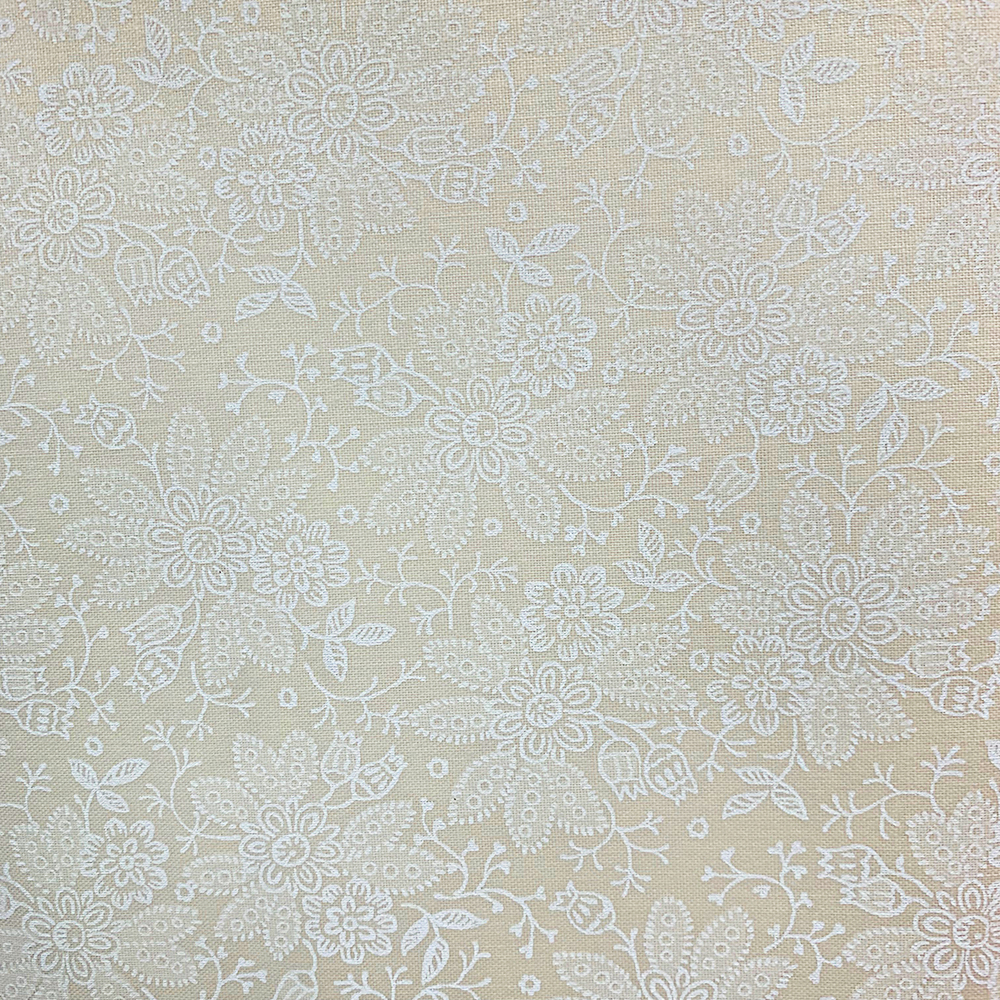 Cotton tone on tone, white on cream, floral print.