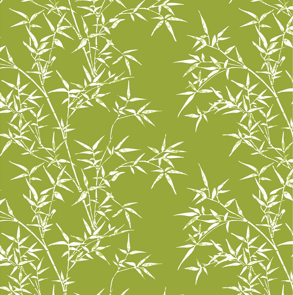 Japanese style bamboo on green, 100% organic cotton.