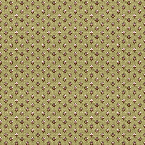 בד כותנה הדפס פרחים במראה וינטג’ על רקע ירוק זית.