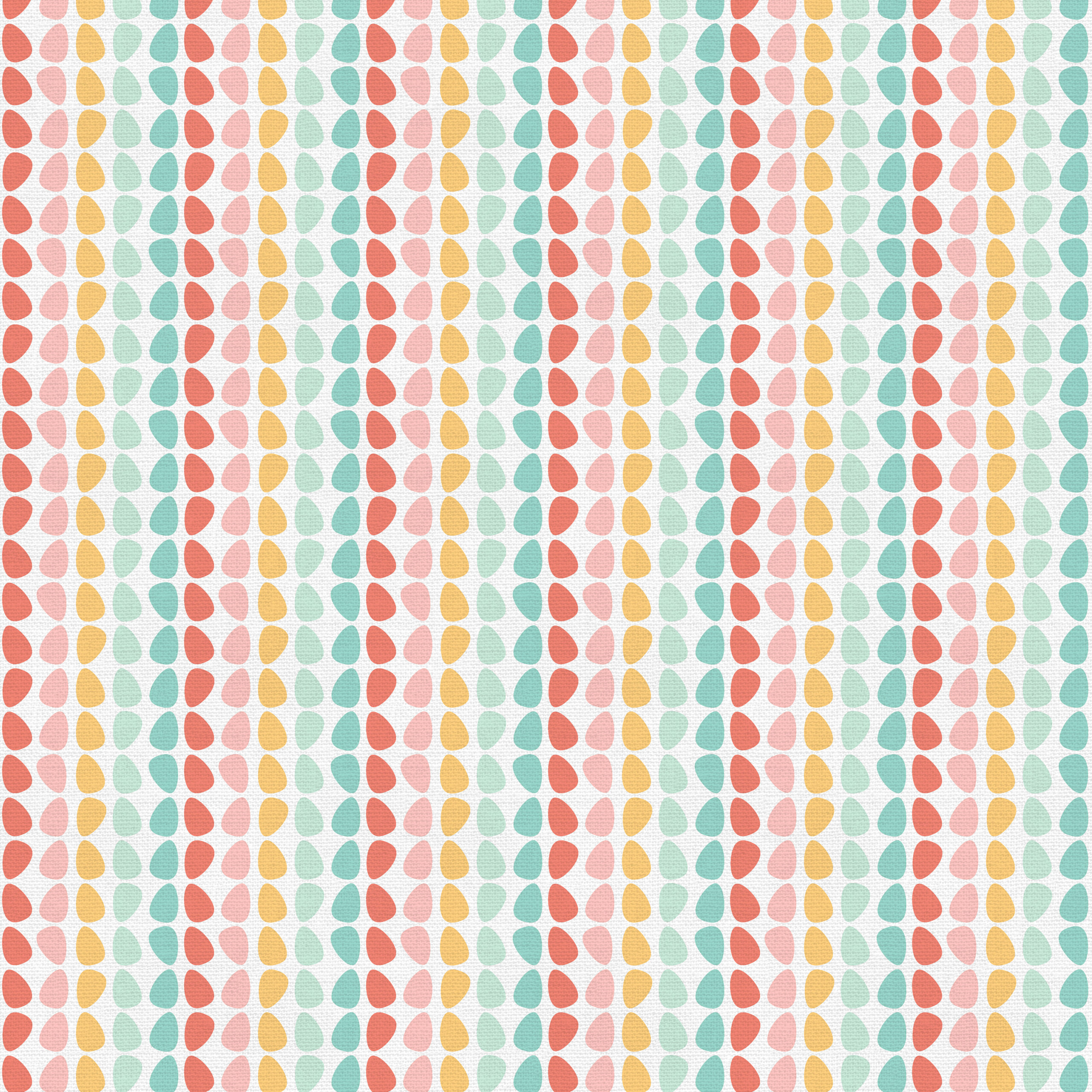 בד כותנה צבעוני, הדפס דמוי טיפות גאומטריות מסודרות בטורים.