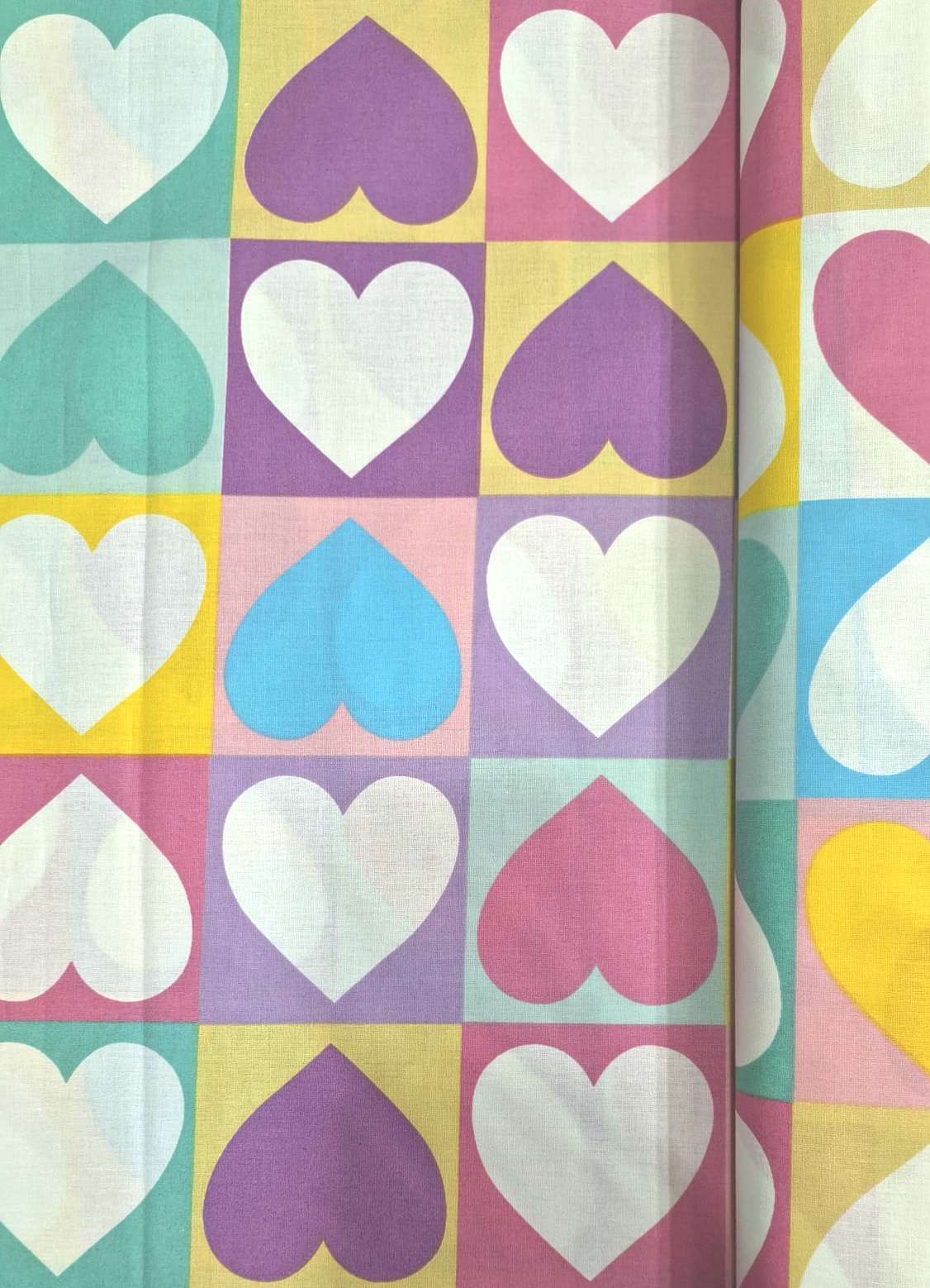3″ hearts printed on wide 100% cotton weave.