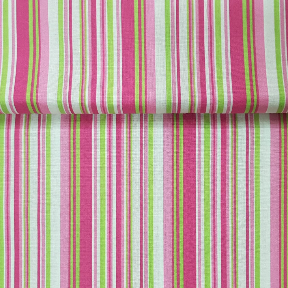 Different widths of pink green white stripes on wide cotton