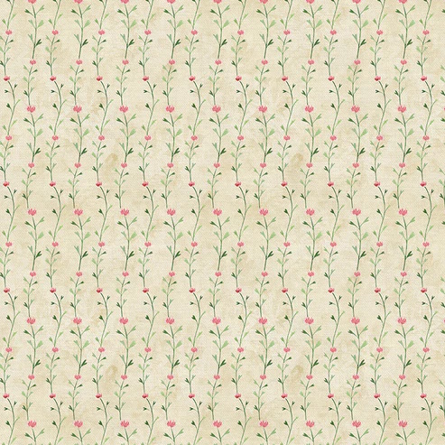 Dainty flowers on vines, cream background. 100% cotton.